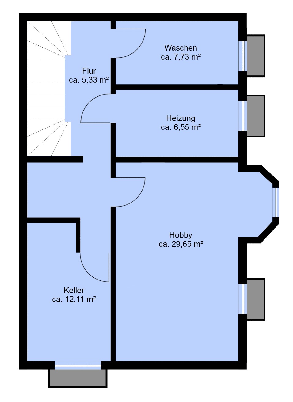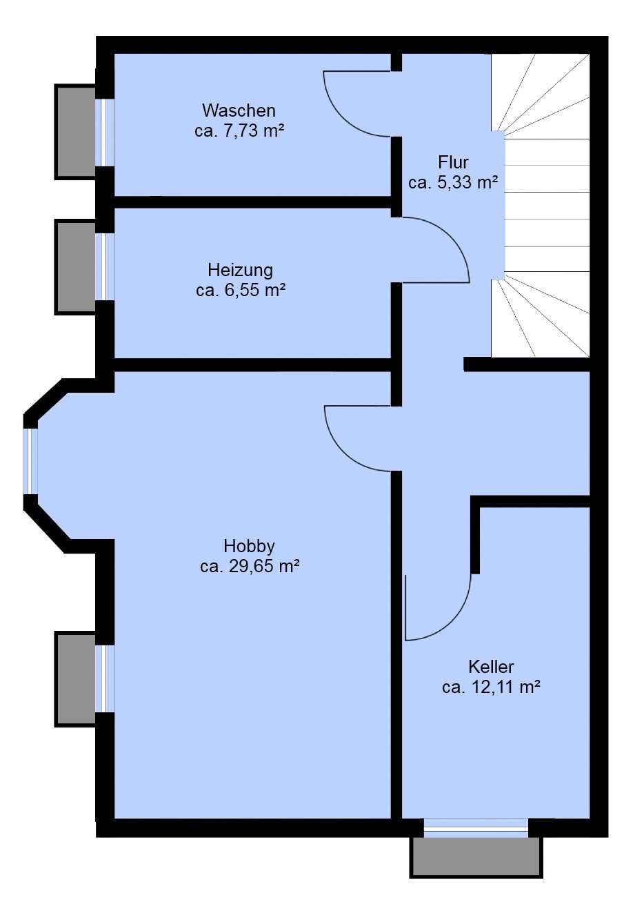 Die Doppelhaushälften befinden sich in einem gewachsenen, ruhigen Wohnumfeld. Im Erdgeschoss befinden sich Flur, Gäste-WC sowie ein großzügiges Wohnzimmer mit Zugang zur Südterrasse und in den Garten. Im Obergeschoss liegen Schlafzimmer mit Loggia, weiteres Zimmer sowie Bad mit Tageslicht. Das Untergeschoss bietet Hobbyraum, Waschraum und zusätzliche Abstellflächen. Jede Einheit verfügt über eine Einzelgarage mit direktem Gartenzugang.