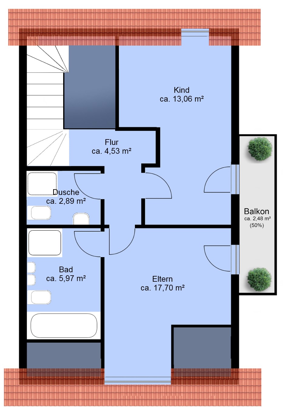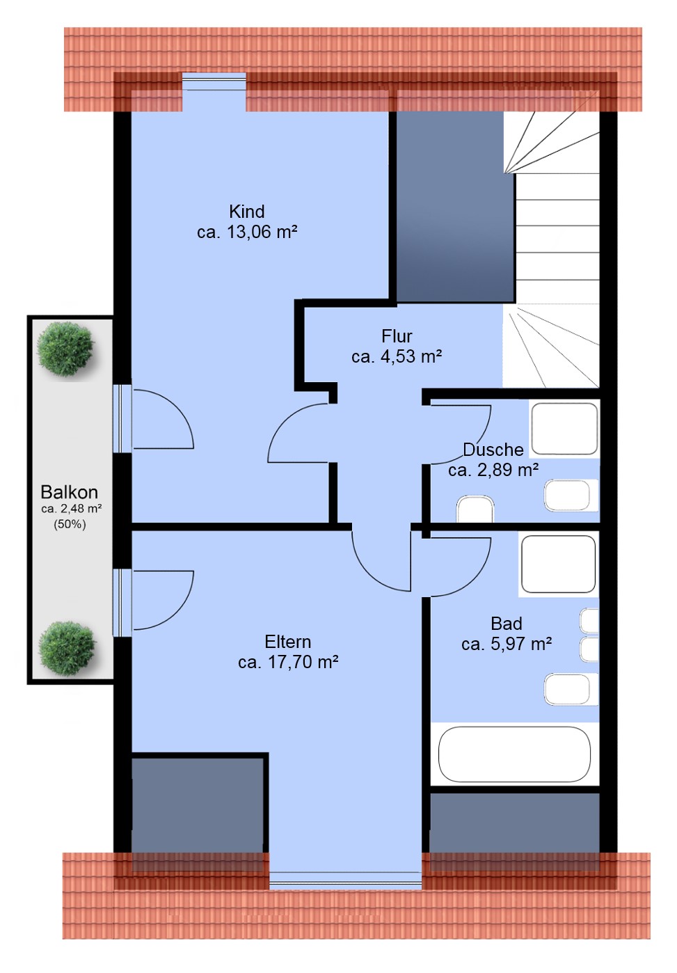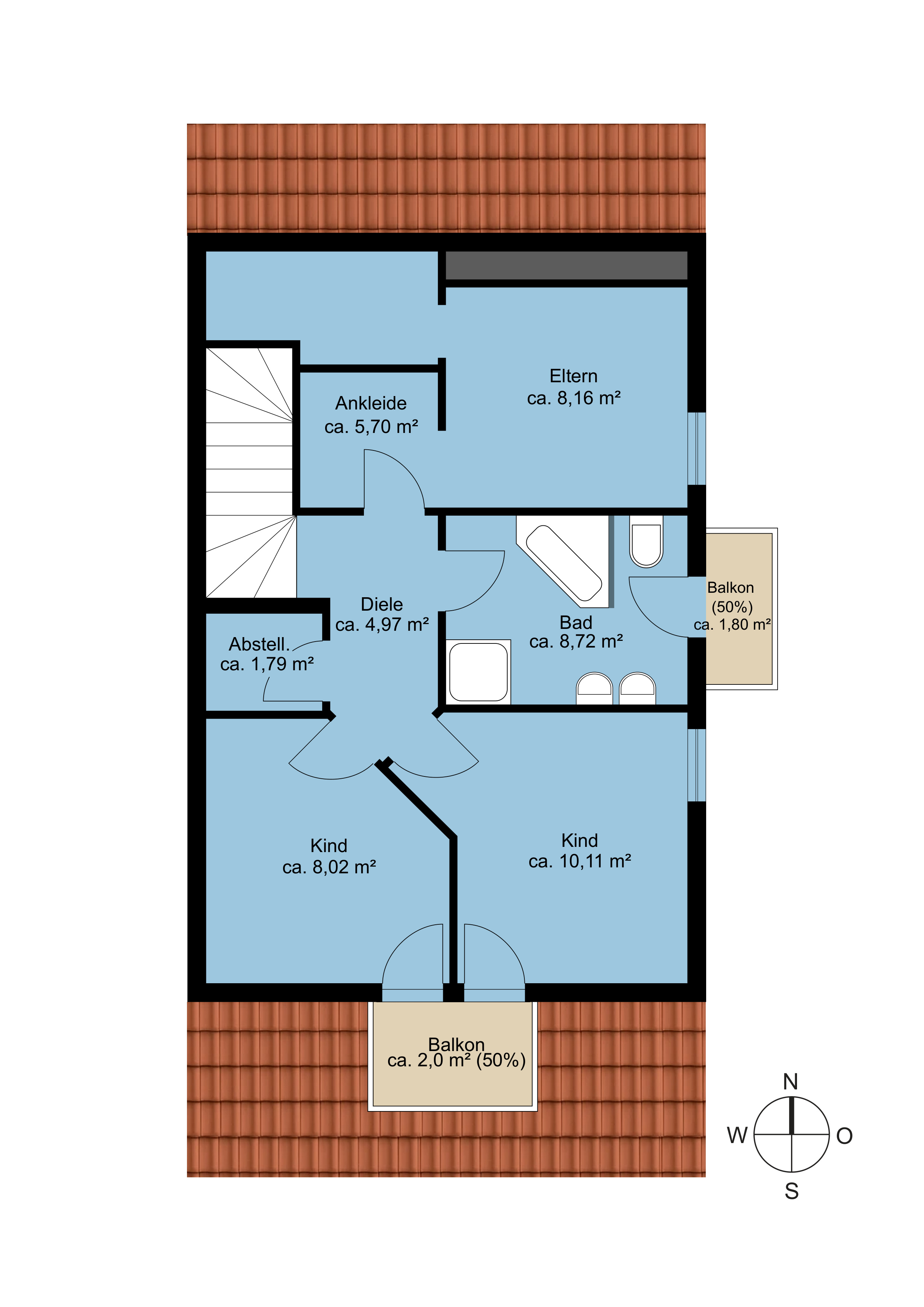 Die Wohnflächen betragen ca. 136 m² bzw. ca. 144 m².