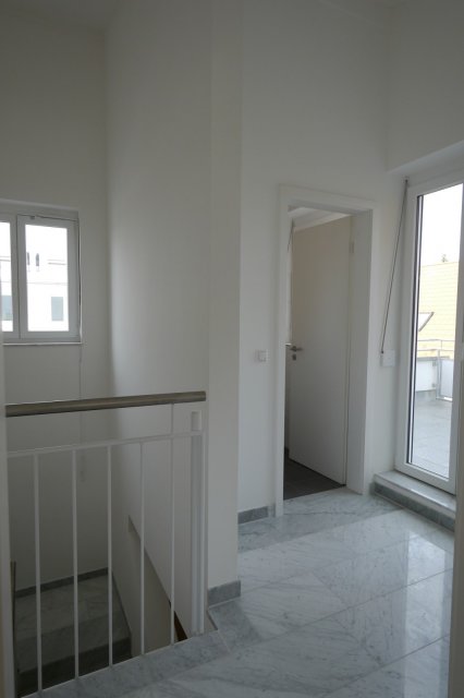 Werfen wir einen Blick unters Dach: Ein kleines Zimmer und ein weiteres WC. Hier gehts hinaus auf die wunderschöne große Dachterrasse mit ca. 13 m und Blick ins Grüne.