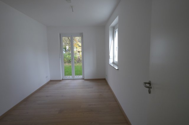 Es wurde hochwertiger Landhausdielen-Parkettboden in Eiche natur verlegt, im Küchenbereich ist der Boden passend zum Parkett cremefarben mit Solenhofener Fliesen ausgestattet. Offene Küche mit Fenster nach Westen. Schauen wir kurz ins Freie? Vis-à-vis geht es hinaus in den Garten: Eine Doppel-Fenstertür öffnet sich zur wunderschönen Terrasse und ins Grüne. Die umlaufende Gartenfläche beträgt ca. 120 qm.